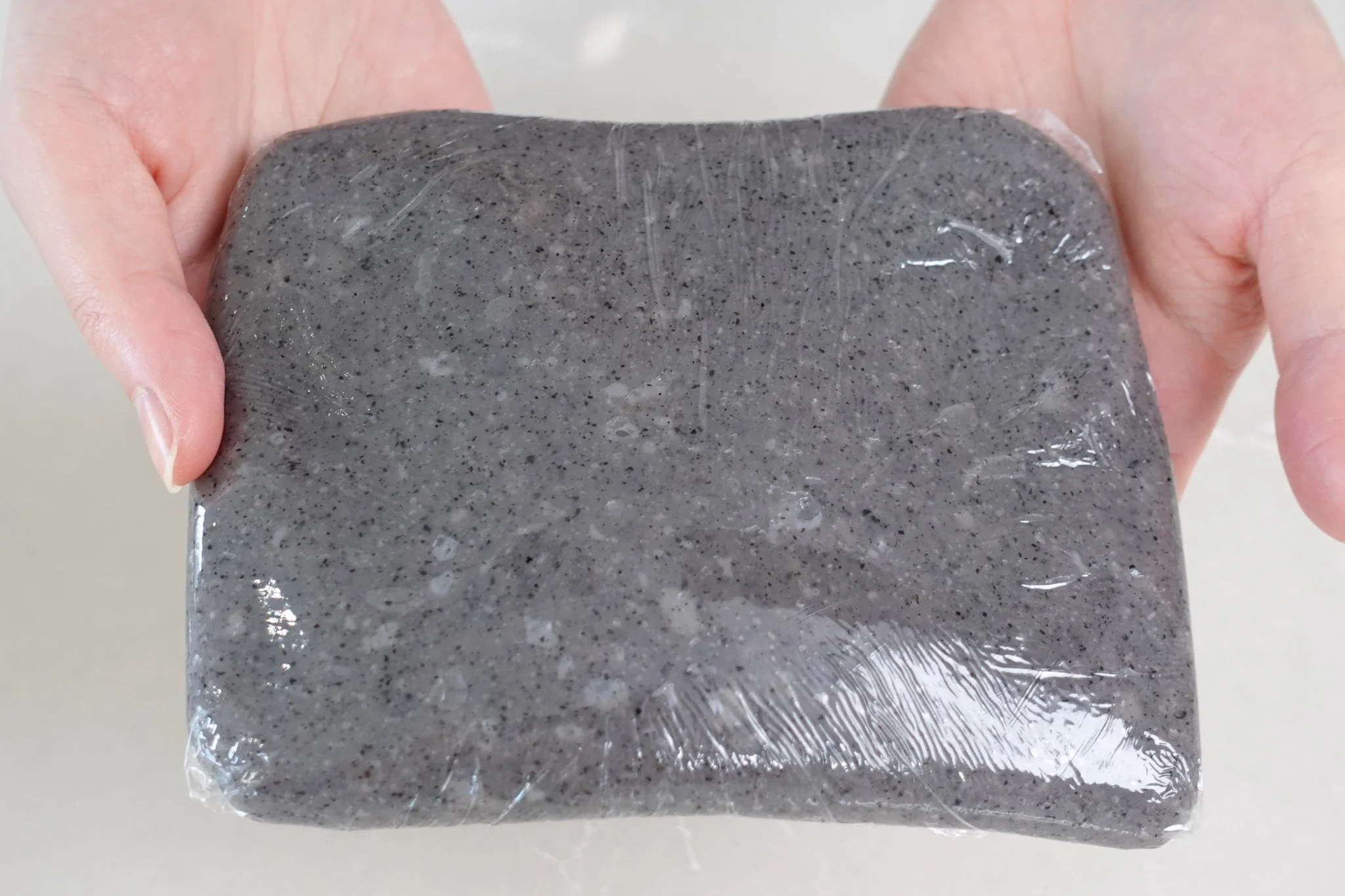 12. To assemble, measure out the portion of snow skin. Gently knead it to soften it slightly.
