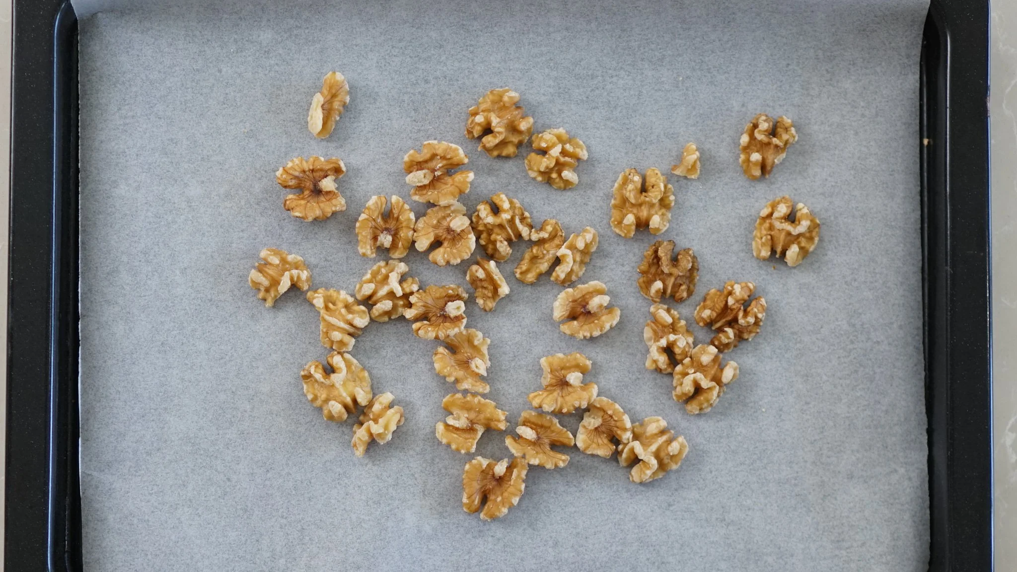 5. While the snow skin is chilling, prepare the ingredients for the filling. Toast the walnuts at 400°F/200°C for 6-7 mins. Allow to cool.