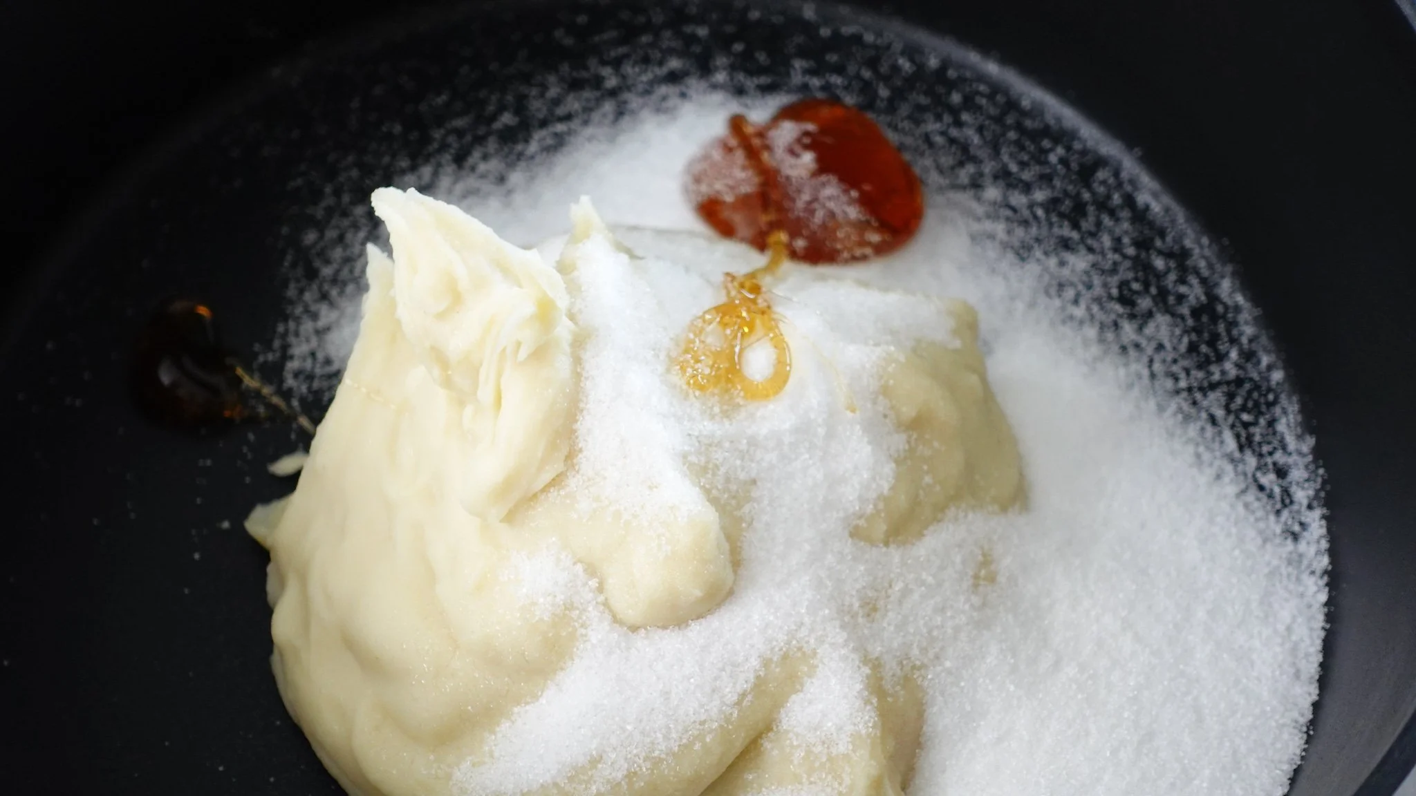 13. Once sugar is melted, introduce the flavourless oil in two parts. Ensure the mixture is emulsified before adding the second half.