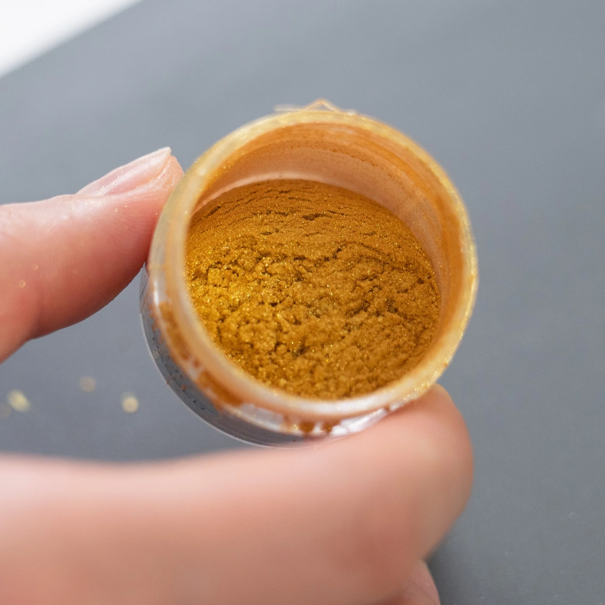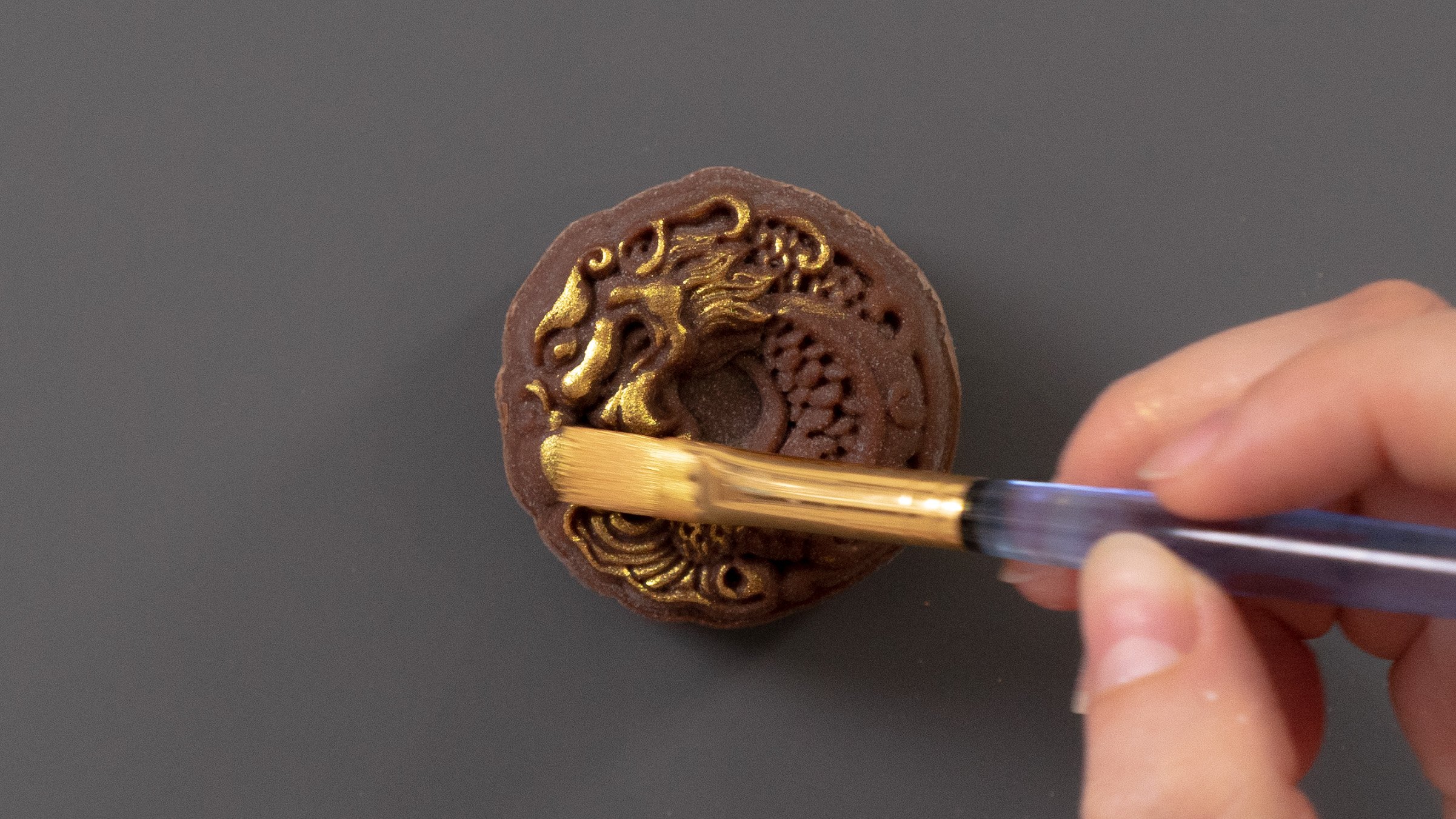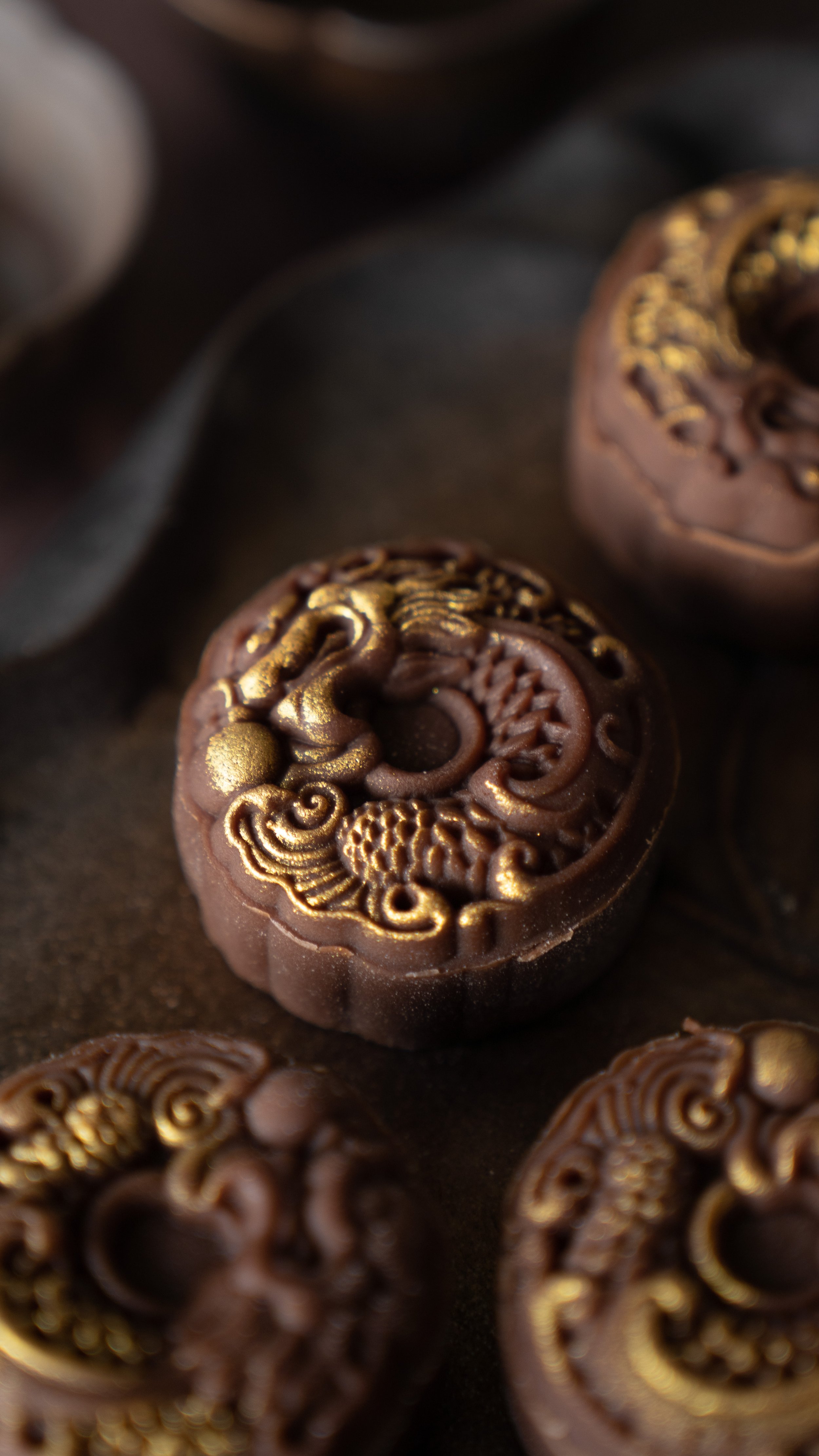 18. As an optional step, mix some gold edible lustre dust with clear almond extract and paint the top of the mooncakes.