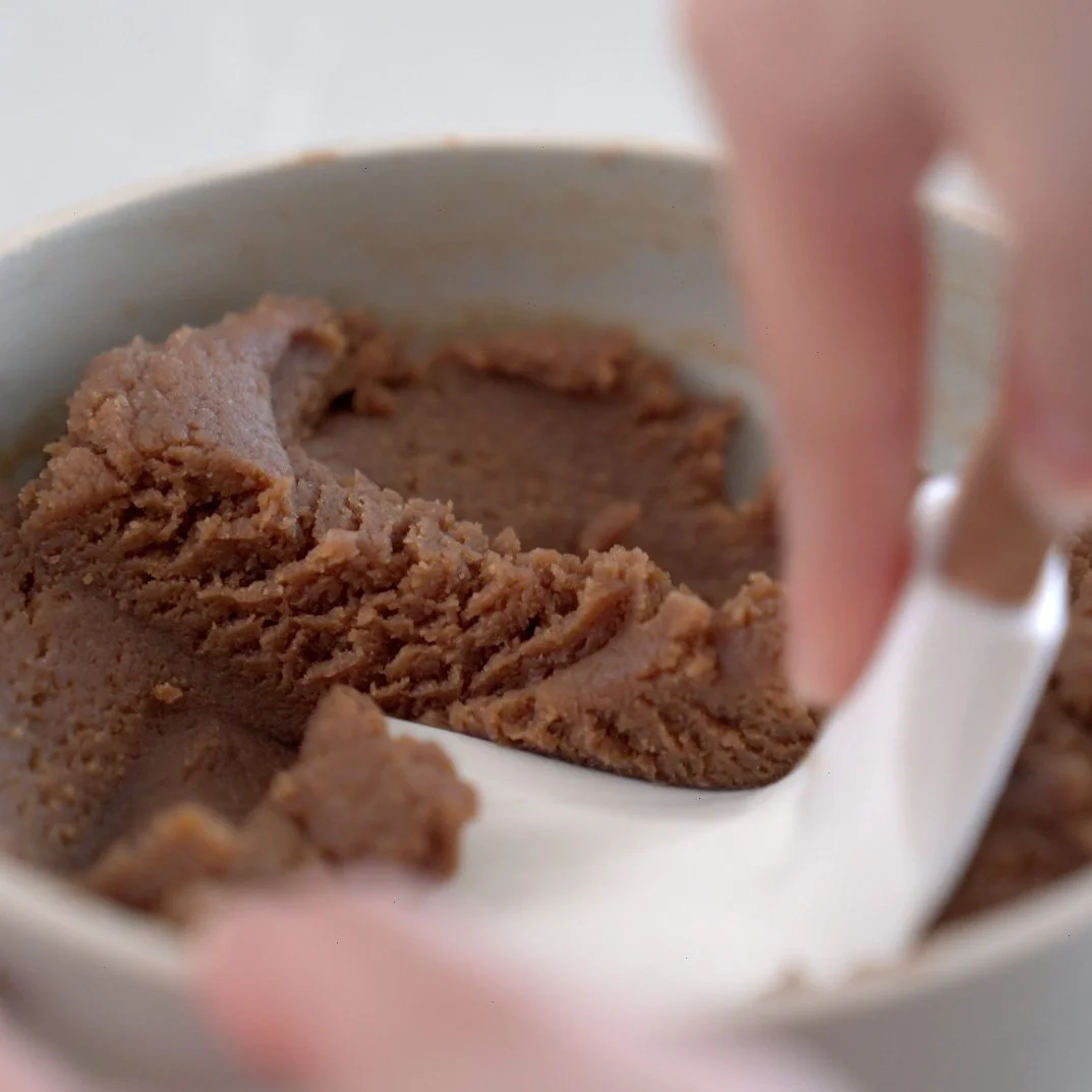 9. Once cooked, knead briefly with a rubber spatula until smooth and portion into 25 g each.