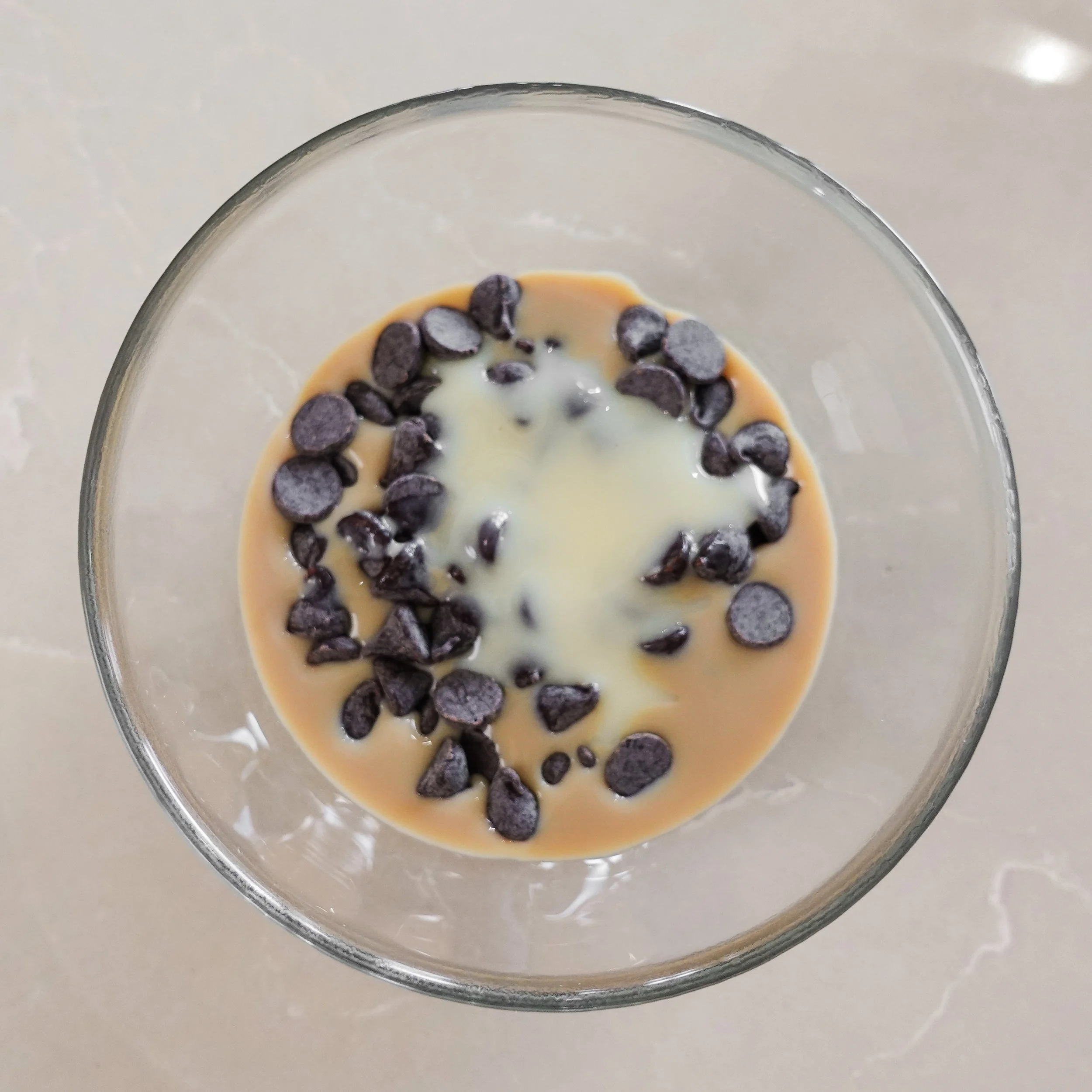 11. Microwave the Baileys Irish Cream, sweetened condensed milk, and semisweet chocolate until melted. Whisk until emulsified.
