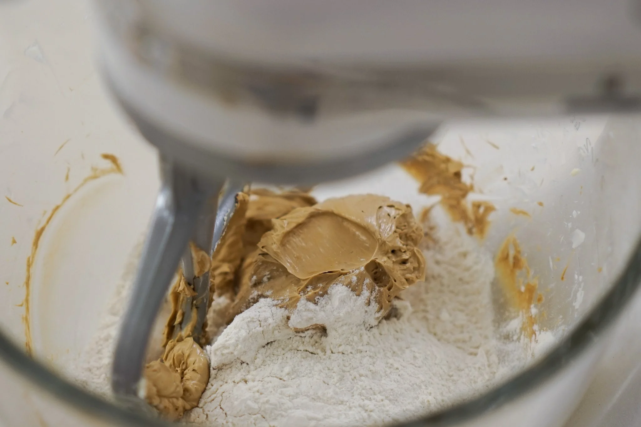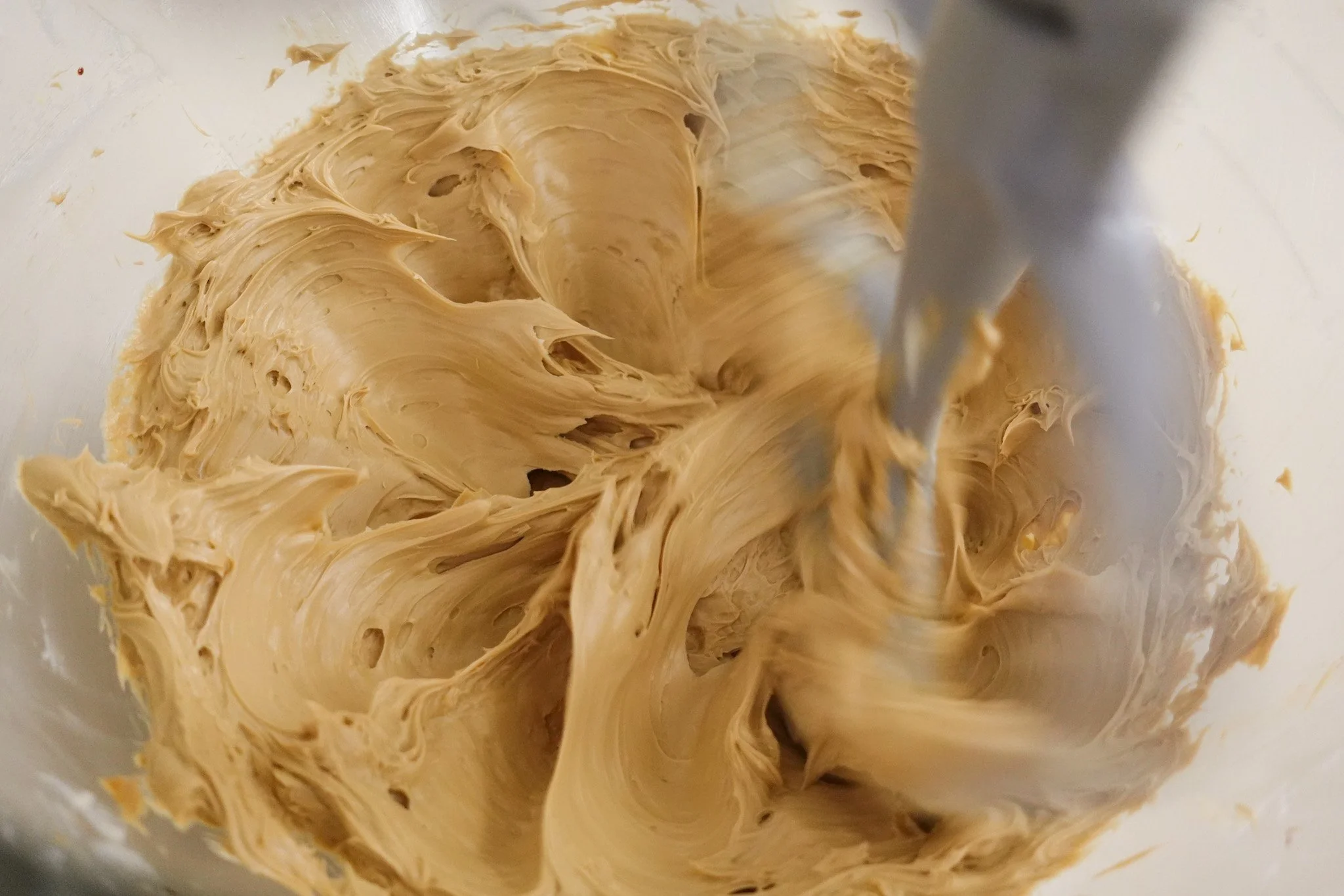 1. Beat the softened unsalted butter with the icing sugar with an electric mixer until fluffy.
