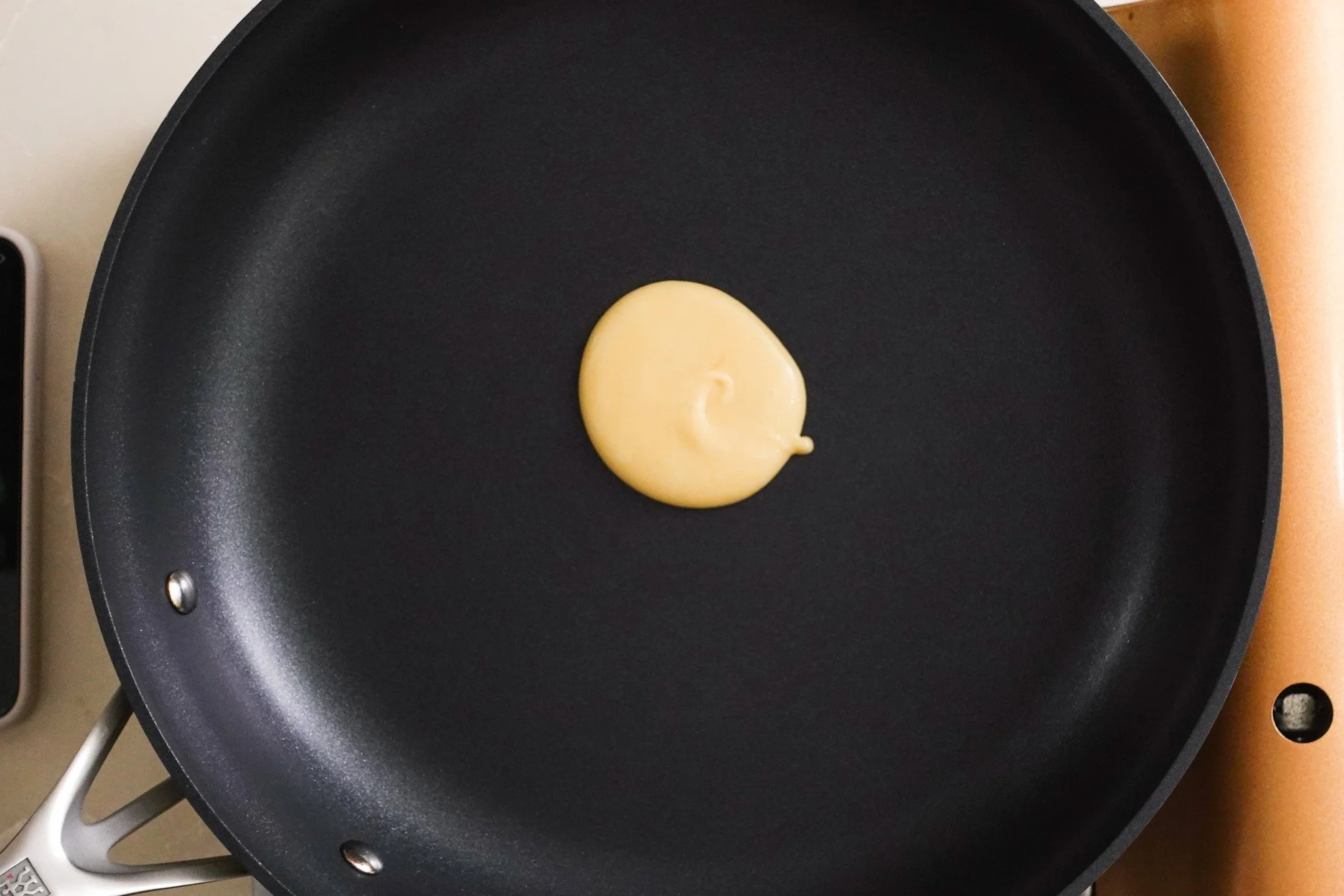 7. To cook and shape the wafers, heat up a shallow non-stick pan on the stove. If you have a crepe press, now is the time to whip that out.
