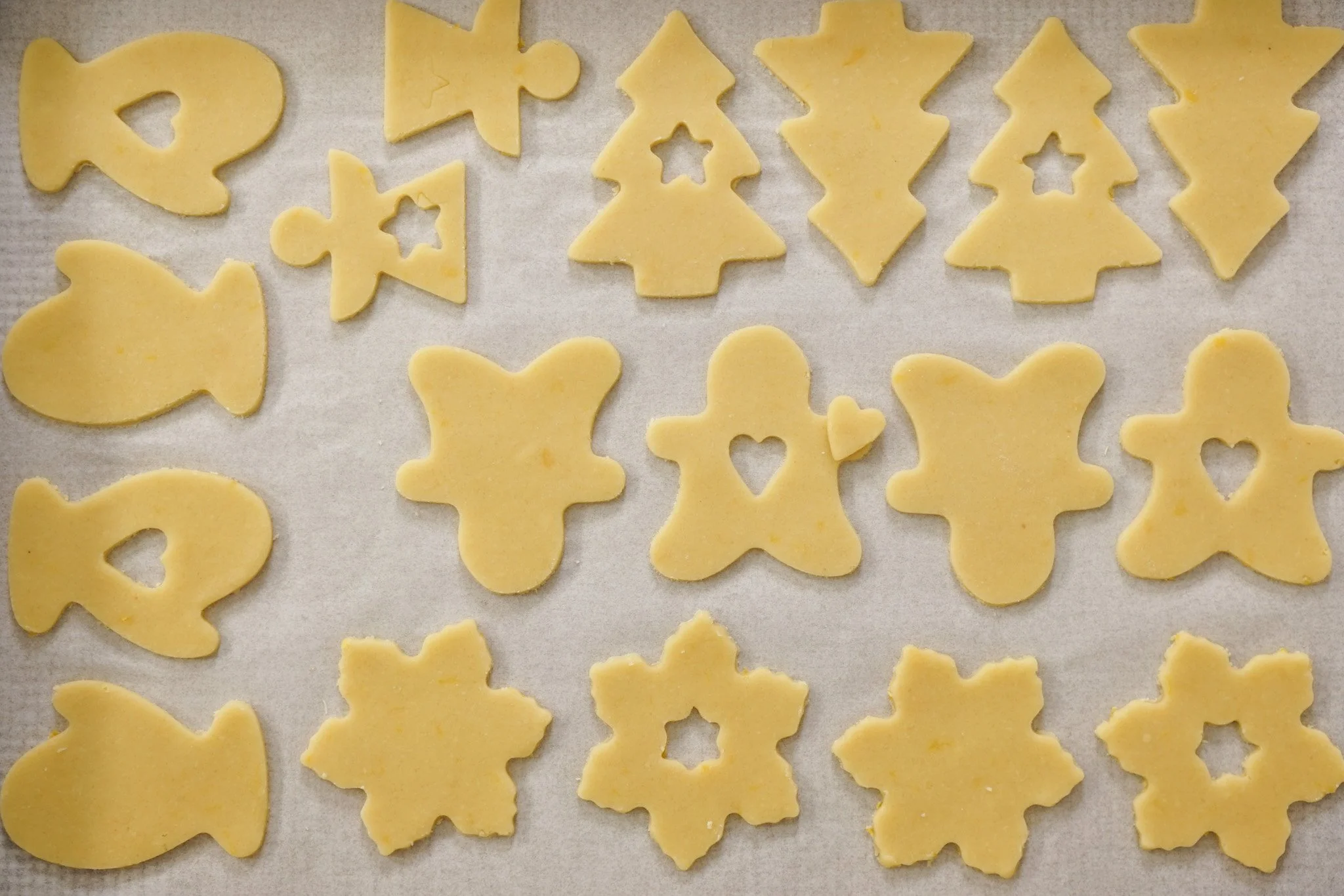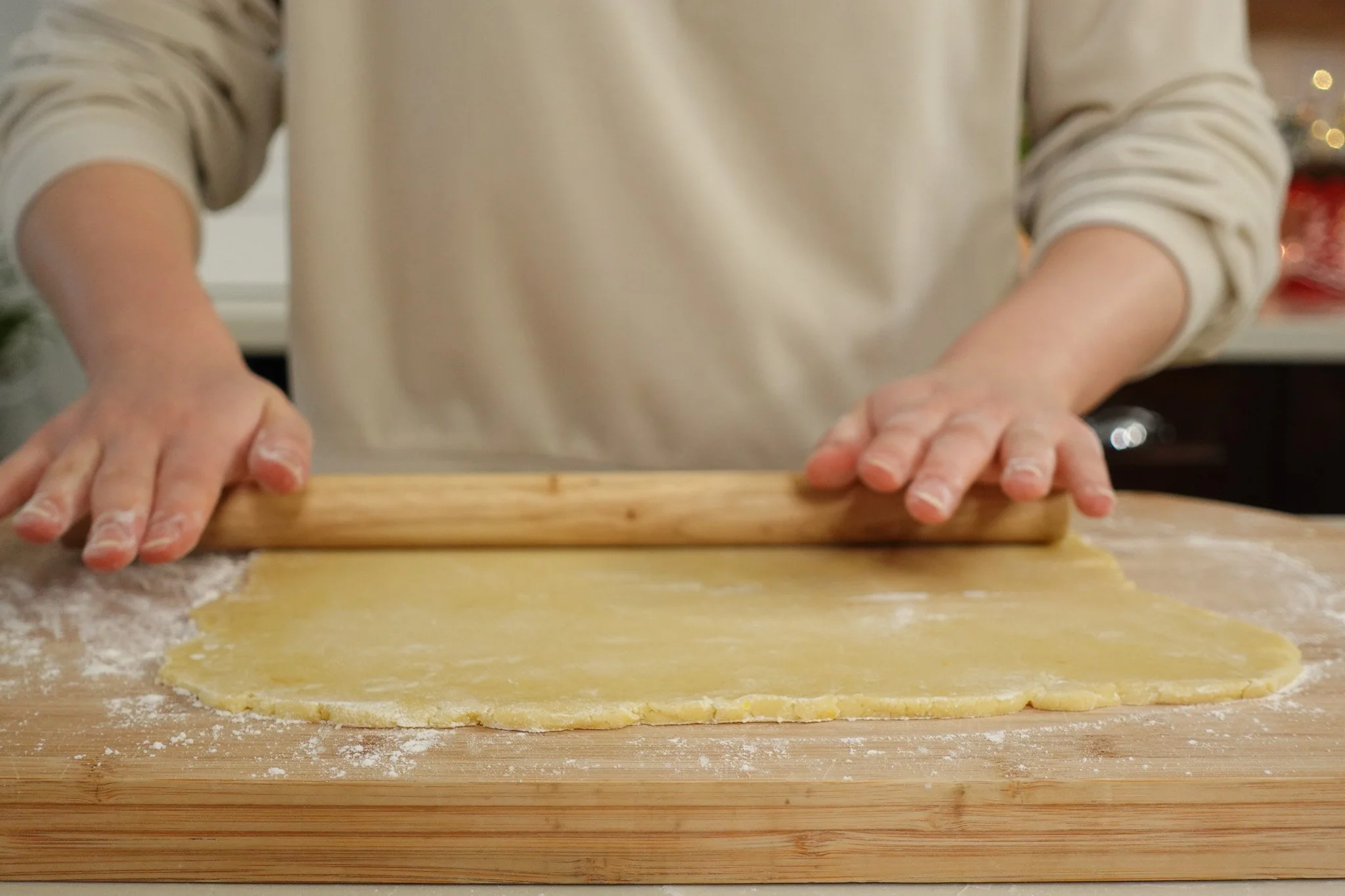 6. Once chilled, roll out the dough on a dusted work surface and cut using your desired cookie cutters.